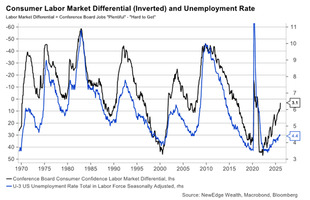 Higher-income households rely less on wages to spend. Lower-income households depend heavily on labor income. And while consumers can be dramatic about inflation or politics, they tend to be fairly accurate when assessing the job market.