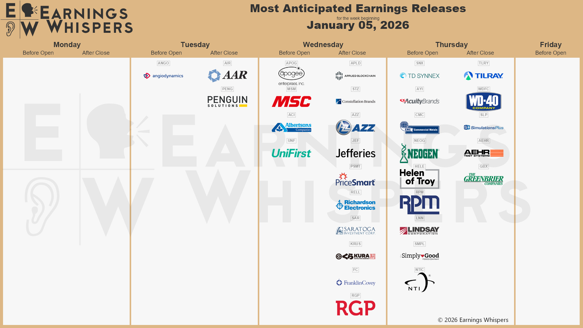 | MONDAY, JAN 5 | |